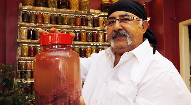 Antalya'da restoran işleten 58 yaşındaki Mustafa Hazar, çam kozalağı, çıra, yumurta, balık ve ahtapot başta olmak üzere 226 çeşit turşu kurdu. Rusların ahtapot turşusunun müdavimi olduğunu belirten Hazar, “Ruslar, bu turşuya bayılıyor. 10 litresini 200 TL'ye alıyor" dedi.