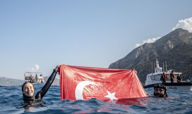 Yayladağı ilçesi Karamağara Koyu açıklarında suya giren sporcu, paletsiz değişken ağırlık kategorisinde Sırp asıllı Lena Balta'nın elinde bulundurduğu 105 metre dünya rekorunu 106 metrelik performansıyla geliştirdi.