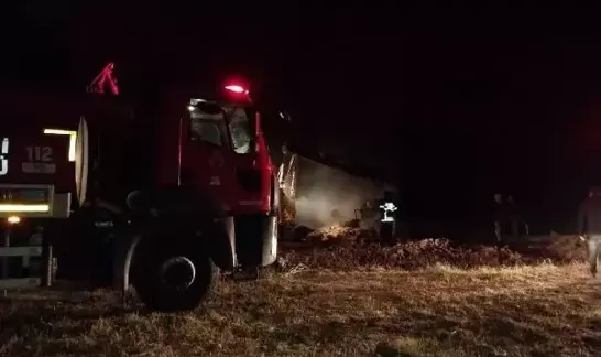 Burdur'un Çeltikçi ilçesinde 250 saman balyası ile 2 römork, çıkan yangında yandı.