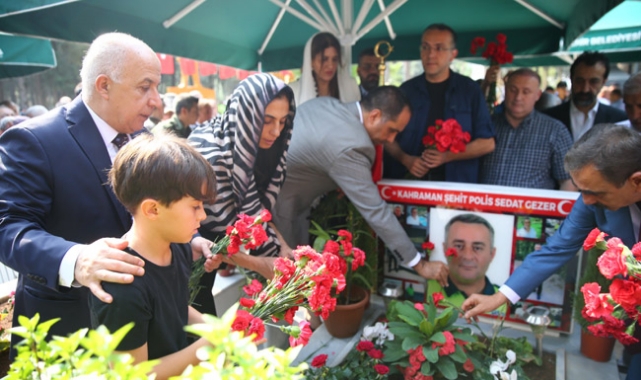 Mersin'in Mezitli ilçesindeki Tece Polisevi'ne geçen yıl düzenlenen terör saldırısında şehit olan polis memuru Sedat Gezer için kabri başında anma programı yapıldı.