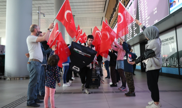 Madalyalı sporcular için İstanbul Havalimanı Dış Hatlar Terminali'nde karşılama töreni düzenlendi. Milli sporcular, Türk bayrağı ve çiçeklerle karşılandı.