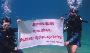 Dalgıçlar suyun altında "Kaybedilen hayatlara seyirci kalmayın. Organlarınızı bağışlayın, hayat kurtarın" yazılı döviz açtı.