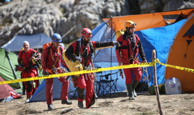 Mersin'de mağarada rahatsızlanan ABD'li dağcının tahliye çalışmaları devam ediyor.