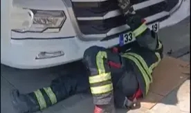 Tankerin motor kısmına sıkışan kedi kurtarıldı