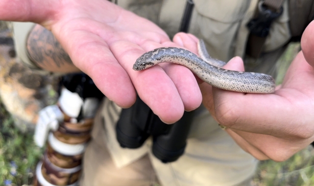 YABAN hayatı fotoğrafçısı Dr. Pedram Türkoğlu, çok nadir görülebilen Türkiye'nin tek boa yılanı türü mahmuzlu yılan (Eryx jaculus) yavrusunu görüntüledi. Bu türün insanlar için tamamen zararsız olduğunu belirten Türkoğlu, "Yaşam biçimleri nedeniyle görüntülemek oldukça zor. Nesilleri tehlikede değil ancak habitat kaybı ve beşeri öldürülmeler nedeniyle popülasyonları azalıyor" dedi.