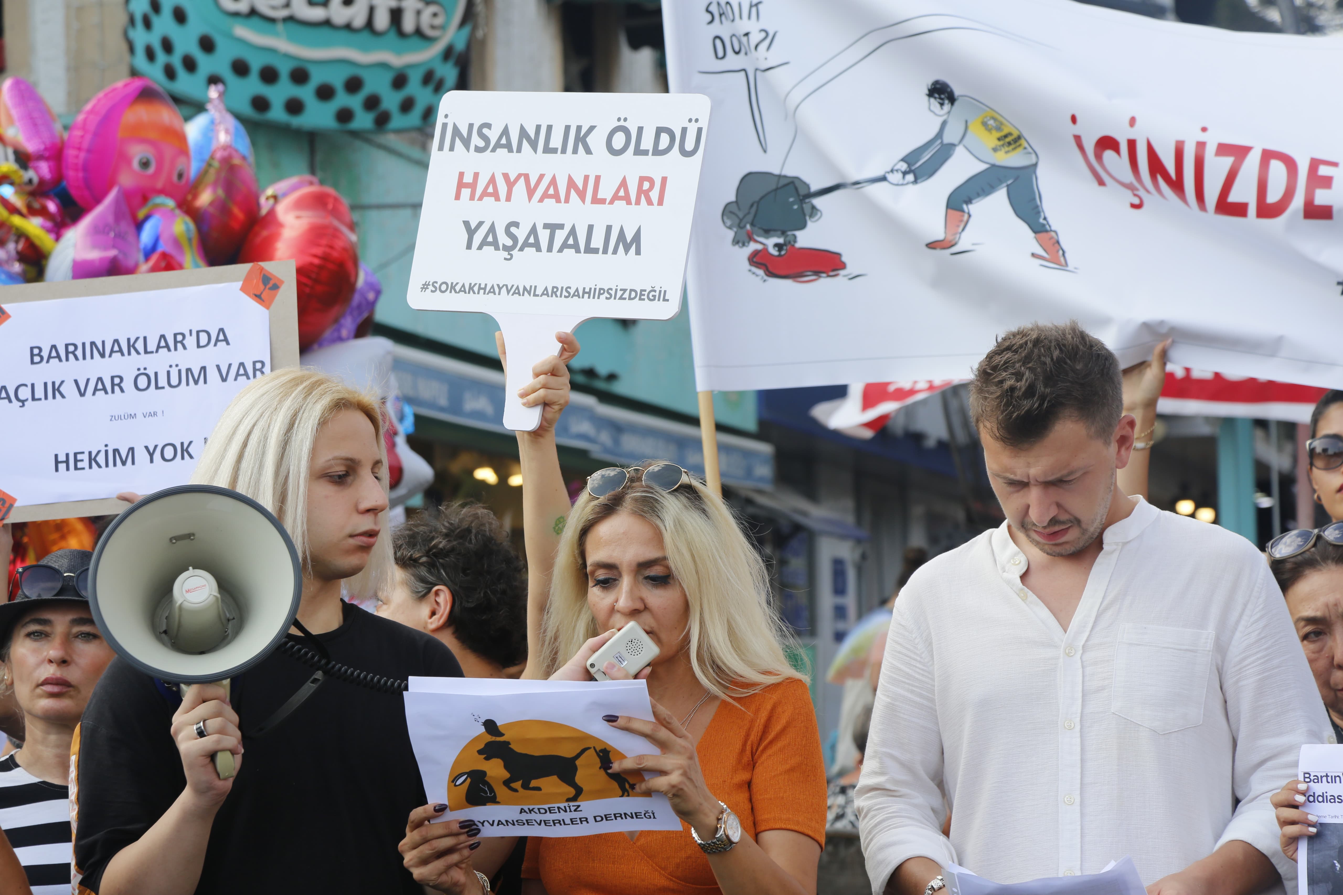 Türkiye’de sokak köpekleriyle ilgili tartışmalar son dönemde şiddetini artırdı. Toplumu ikiye bölen tartışmalara Antalyalı hayvan severler de katıldı. Dün Attalos Heykeli önünde bir basın açıklaması yapan Akdeniz Hayvan Severler Derneği Başkanı Berrin Özkan, yetkililer ve sokak köpekleri aleyhine içerik paylaşan sosyal medya hesaplarının 'çözüm' olarak sunduğu sokak köpeklerinin barınaklara kapatılması önerisinin çözüm olamayacağını söyledi. Özkan, belediyelerin kısırlaştırma merkezleri kurarak eşzamanlı olarak yapılacak çalışmalarla bir yıl içerisinde 3 milyon sahipsiz sokak hayvanının kısırlaştırılabileceğini belirtti. 2001 yılında çıkan kanun öncesine kadar belediyelerin 100 yıla yakın süre boyunca sokak hayvanlarını zehirlediğini vurgulayan Özken, “Belediyeler, bütçelerine resmen zehir ödeneği koyarak 100 yıla yakın bir süre 2004 yılına kadar sokak hayvanlarını zehirleyerek ve vurarak öldürdüler. Buna rağmen üreme ve sayı kontrol altına alınamadı” dedi.