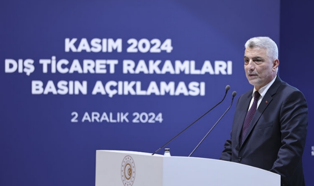 "Bu yılın 11 ayında mal ihracatımız yüzde 2,5 artışla 238,5 milyar dolar oldu, mal ihracatında net 5,8 milyar dolar artış sağlandı. Ocak-kasım döneminde ithalatımız yüzde 6,4 azalışla 311,7 milyar dolara geriledi, 21,2 milyar dolar azaldı. İşte ihracattaki artış, ithalattaki azalışla dış ticaret sektörü olarak Türkiye'nin yüzde 3,2'lik 9 aylık büyüme oranına net 2,2 puan katkı yapmış olduk."