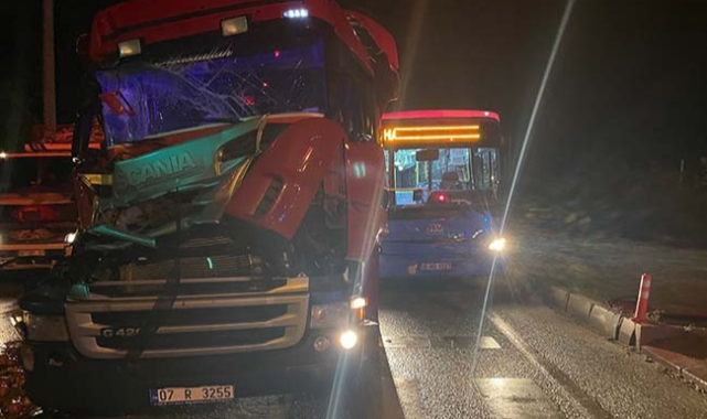Tır, kamyon ile otobüse çarptı