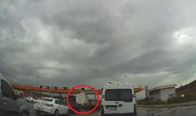 Kaza anı ise gişe sırası bekleyen bir otomobilin araç kamerasına yansıdı.
