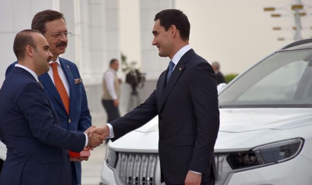 Sanayi ve Teknoloji Bakanı Mehmet Fatih Kacır, adını Pamukkale Travertenleri'nden alan 2 beyaz renkli Togg'u, Türkmenistan Devlet Başkanı Serdar Berdimuhamedov'a teslim etti.