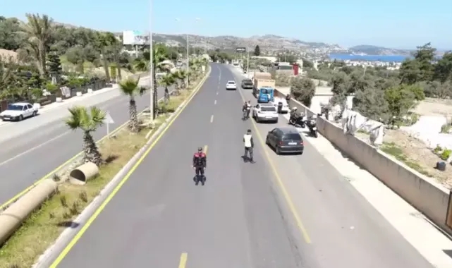 Muğla'nın turistik ilçesi Bodrum'da, bayramda, jandarmanın helikopter ve dron destekli trafik denetlemesinde, kurallara uymayan 170 sürücüye 33 bin 368 lira cezai işlem uygulandı, 3 araç trafikten menedildi.