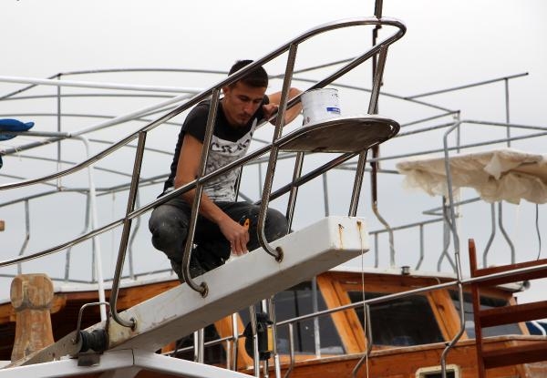6 yıllık tur teknesi sahibi Bora Altıntaş, "Şu anda mazot tankını, pis su tankını boyuyoruz. Daha sonra macun, vernik ve beyaz boya yapacağız. Bakım işlerini bitirip denize atacağız. Bu yıl beklentimiz yüksek. Sosyal medyadan acenteleri takip ediyoruz. Onların beklentileri de yüksek. Onların beklentilerine göre bizim de beklentimiz şekilleniyor" diye konuştu.