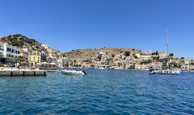 Adanın "U" şeklindeki liman rıhtımına yaklaşanları, peşi sıra dizilmiş yatlar, yelkenliler, balıkçı tekneleri ile biri gidip biri gelen kruvaziyerler karşılıyor.