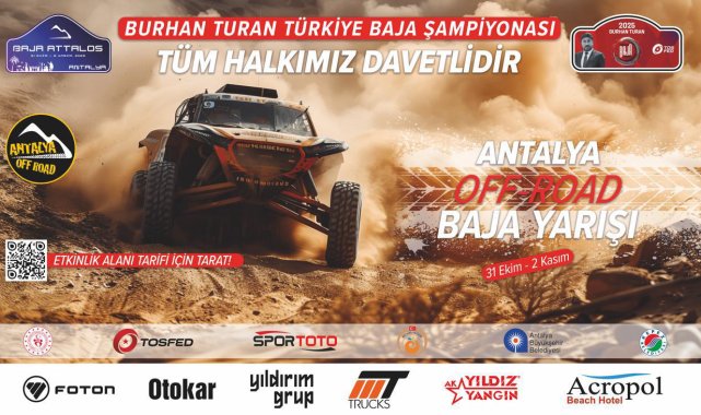 TÜRKİYE Otomobil Sporları Federasyonu 2025 Ulusal Yarışma Takvimi'nde yer alan Burhan Turan 2025 Türkiye Baja Şampiyonası'nın üçüncü ayağı, 31 Ekim Cuma günü Kepez'de başlıyor.Kepez Belediyesi ev sahipliğinde, Burhan Turan 2025 Türkiye Baja Şampiyonası Dokumapark'ta gerçekleştirilecek. Antalya Offroad ve Otomobil Sporları Kulübü tarafından organize edilen ve 3 gün sürecek şampiyona, 31 Ekim Cuma Dokumapark'tan start alacak. Yarışmacılar, Antalya'nın farklı noktalarında düzenlenecek etaplarda hız ve dayanıklılıklarını test edecek. İlk gün, Dokumapark'taki idari kontrol ve kayıt işlemlerinin ardından yapılacak seremoni startıyla yarışmacılar piste çıkacak. 31 Ekim Cuma günü Varsak etabında 9 kilometrelik bir mücadele yaşanacak. İkinci gün, Festikan- Moryer Yaylası arasındaki 73 kilometrelik etapta yarış heyecanı devam edecek. Üçüncü gün ise Yarbaşçandır etabında 49 kilometrelik mücadeleler sporseverleri bekliyor. Her yarışın ardından araçlar Dokumapark'a dönerek izleyicilere yarış atmosferini yakından yaşama fırsatı sunacak. Şampiyonanın ödül töreni, 2 Kasım Pazar günü Dokumapark'ta saat 18.00'da düzenlenecek.