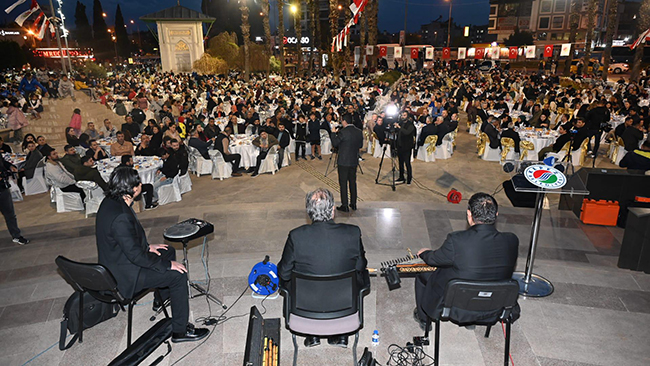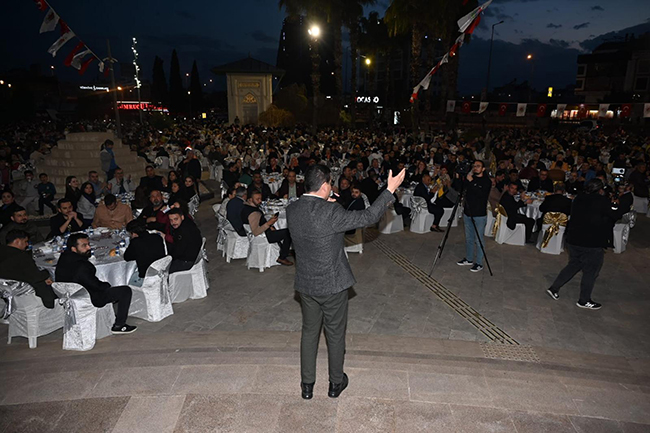 Kepez Belediye Başkanı Hakan Tütüncü, belediye personeli ile iftar yemeğinde bir araya geldi. Cumhur İttifakı’nın Antalya Büyükşehir Belediye Başkan adayı Tütüncü, belediye meydanında düzenlenen iftar yemeği ile personeline veda etti. İftar yemeğine, AK Parti Antalya Milletvekili Mustafa Köse, AK Parti Antalya İl Başkanı Ali Çetin, Cumhur İttifakı’nın Kepez Belediye Başkan adayı Rıza Sümer katıldı. Belediye personelinin tam kadro katıldığı iftar yemeğinde konuşan Kepez Belediye Başkanı Hakan Tütüncü, “Kepez’imizin 15 yılına damga vurmuş belediye emekçilerimiz” diyerek, sözlerine başladı. Bu buluşmanın bir veda olduğunu belirten Tütüncü, “15 yıl boyunca sizlerle her zaman burada, bu belediye meydanımızda böylesi güzel iftar sofralarında beraber olmanın tarifsiz mutluluğunu yaşadık. 15 yıl boyunca sizlerle hem mesai arkadaşı olduk, hem de her birinizle kocaman bir aile olmaya talip olduk. Geldiğimiz noktada bunu da başardık. 15 yılda Kepez’i nereden nereye getirdik. Aynı zamanda dostluk, aynı zamanda kardeşlik, aynı zamanda bir aile hukuku oluşturma anlamında da çok önemli mesafeler kat ettik“ dedi.
