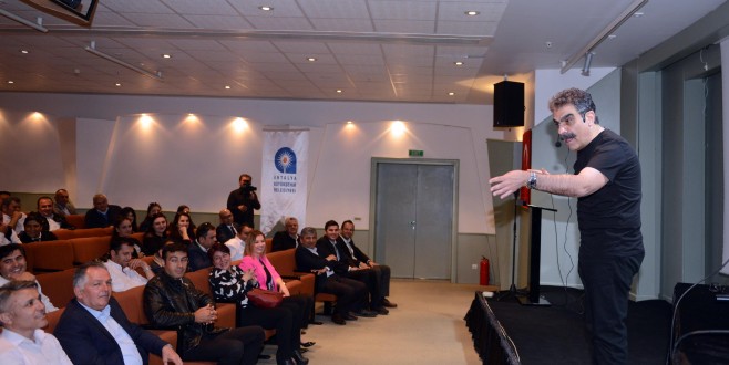 Salonda bulunan izleyicilere çeşitli hareketler yaptıran Kızıldağ’ın konferansı bol kahkahalı ve eğlenceli görüntülere sahne oldu.