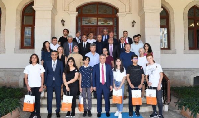 Karşılıklı sohbetin ardından Vali Ersin Yazıcı, LGS 2022 birincilerine ödüllerini takdim ederek aileleri ve öğretmenleri ile hatıra fotoğrafı çektirdi.