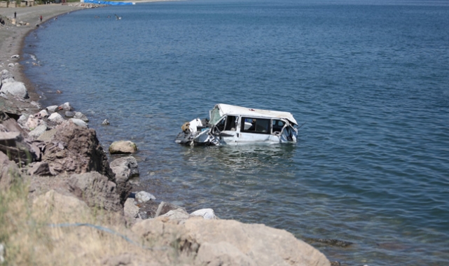 Devlet Su İşleri sosyal tesisleri yakınında 31 AJA 12 plakalı minibüs kontrolden çıkarak Van Gölü'ne düştü.