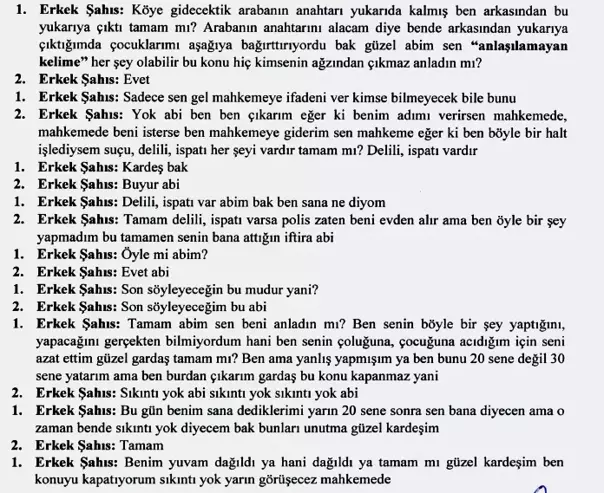 Telefon görüşmesinin devamında Hüseyin Akbulut’un, “Bu konu kimsenin ağzından çıkmaz. Sen gel mahkemede ifadeni ver” dediğini, E.Y.’nin ise “Eğer ben böyle bir şey yaptıysam delili ispatı vardır. Mahkeme beni çağırırsa giderim. Delili ispatı varsa polis gelir beni evimden alır ama ben böyle bir şey yapmadım bu senin bana attığın bir iftira” diye yanıt verdiği bildirildi. Bunun üzerine Hüseyin Akbulut’un, “ Son söyleyeceğin bu mu? Ben senin çoluğuna çocuğuna acıdığım için seni azat ettim ama yanlış yapmışım. Ben bunu 20 sene değil 30 sene yatarım ama buradan çıkarım bu konu kapanmaz. Bugün benim sana dediklerimi 20 sene sonra sen bana diyeceksin. O zaman da ben sıkıntı yok diyeceğim” dediği ifade edildi.