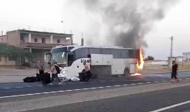 Diyarbakır’da seyir halindeyken alev alan yolcu otobüsü, kullanılamaz hale geldi. Alevleri fark eden sürücü, otobüsü yol kenarında durdurarak yolcuları tahliye etti. Bazı yolcular, yanan otobüsteki valizlerini almaya çalıştı. Bu anlar o anlar cep telefonu kamerasına yansıdı.