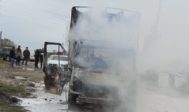 Yangın çıkan kamyonette hasar oluştu