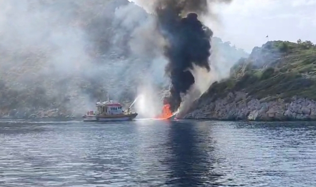 Muğla'nın Datça ilçesinde bir tekne yandı.
