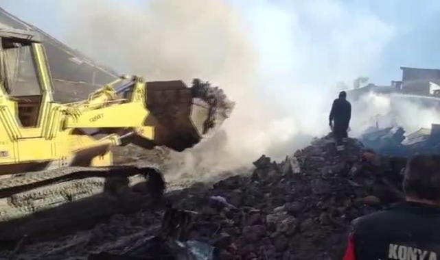 Beyşehir Belediyesi tarafından sevk edilen iş makineleri, yanan evlerin enkazını kaldırmak için çalışma başlattı.