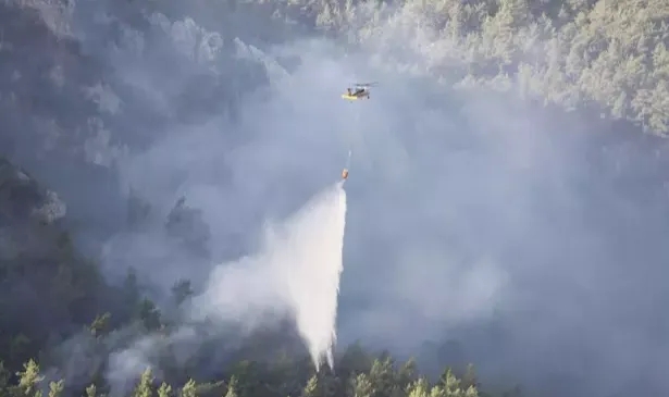 Muğla'nın Menteşe ilçesi Sarnıç Mahallesi yakınlarındaki ormanda, dün saat 13.00 sıralarında çıkan yangına, orman personeli, sivil toplum kuruluşları, Muğla Büyükşehir Belediyesi ve jandarma personelinin aralarında bulunduğu yaklaşık 700 kişi ile 6 uçak, 15 helikopter, Sahil Güvenlik Komutanlığı'na bağlı 2 bot, 100’den fazla arazöz ve 30 iş makinesi ile müdahale sürüyor. Sarp arazide devam eden söndürme çalışmalarında ekipler güçlük yaşıyor.