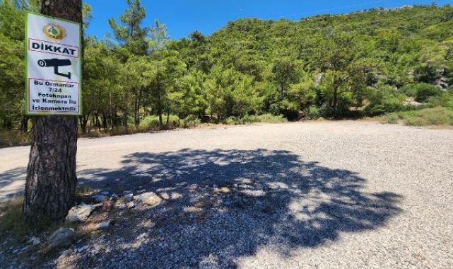 Orman Genel Müdürlüğü'nün uyarı tabelası astığı ağacın çevresinde onlarca mangal ateşi külleri, kömür parçaları ve cam şişeler bulunması dikkati çekti. 'Bu ormanlar 7/24 fotokapan ve kamera ile izlenmektedir' uyarısının yazdığı ağacın yakınındaki onlarca farklı yerde küller, cam şişeler ve çöpler görüldü. Uyarı levhasının asılı olduğu ağaçtan 15-20 adım ileride piknik yapanların mangal sonrası bıraktığı sönmüş kömür parçaları ile atıklar yer aldı.