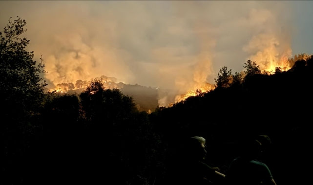 Gece boyunca da süren söndürme çalışmalarına gece görüşlü 3 helikopter de destek verdi.