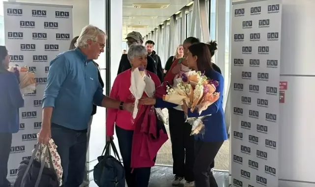 Muğla'nın turistik ilçesi Bodrum’a 2025 yaz sezonunun ilk dış uçuşları kapsamında Londra’dan 3 uçak ile 502 yolcu geldi. Yüzde 90 doluluğun yaşandığı uçaklardan inen yolcular çiçeklerle karşılandı.