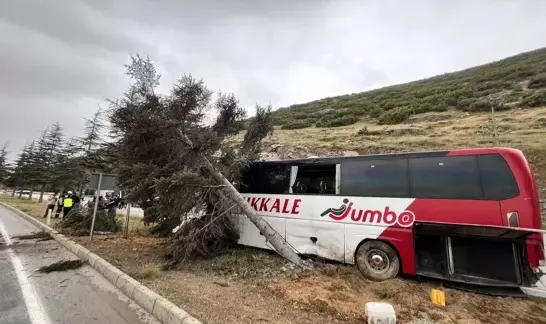 Isparta'da yolcu otobüsünün refüje çıkıp ağaçlara çarptığı kazada, 11 kişi yaralandı.