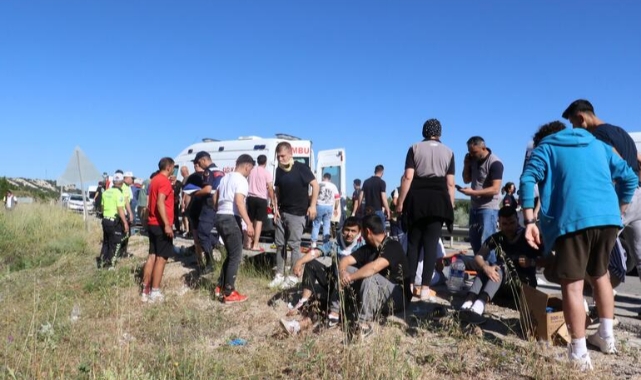 Eskişehir'de, yol kenarındaki araziye düşen yolcu otobüsündeki 35 kişi yaralandı.
