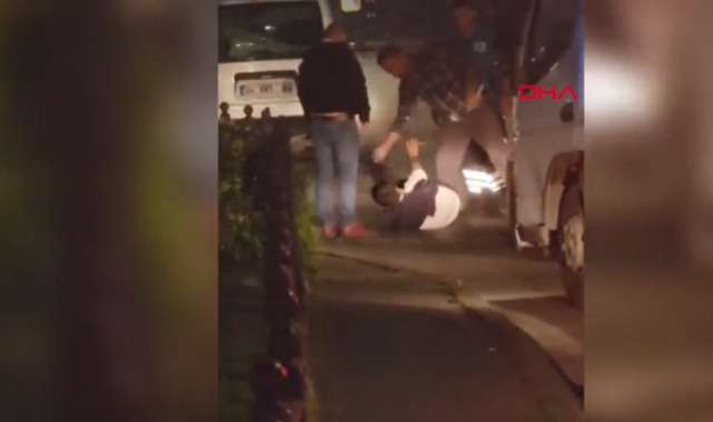 Dayak yediği sırada kıyafeti yırtılan alkollü kişinin, yerde yumruklanarak ve tekmelenerek darbedilme anı cep telefonu kamerasıyla saniye saniye görüntülendi.