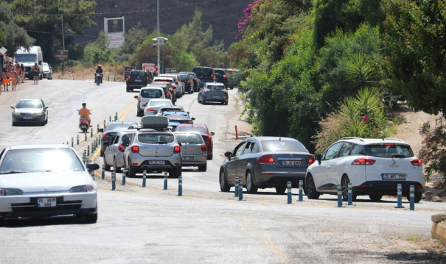 Fethiye ilçesine gelen tatilciler, Ölüdeniz Mahallesi'ne gidilebilen yolda yaklaşık 5 kilometrelik araç kuyruğu oluşturdu. Trafikte aksamaların önüne geçmek için jandarma ekipleri yolda ve bazı kavşaklarda görev yaptı.