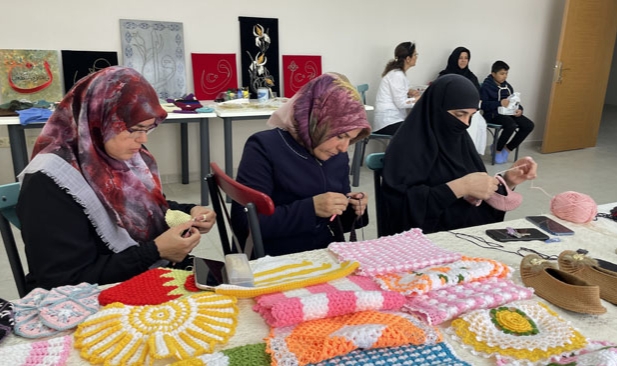 Kurslara katılan kadınlar, filografi yapıyor, patik, çanta gibi çeşitli örgü işleri, ahşap yakma sanatıyla depremin etkilerinden uzaklaşmaya çalışıyor.
