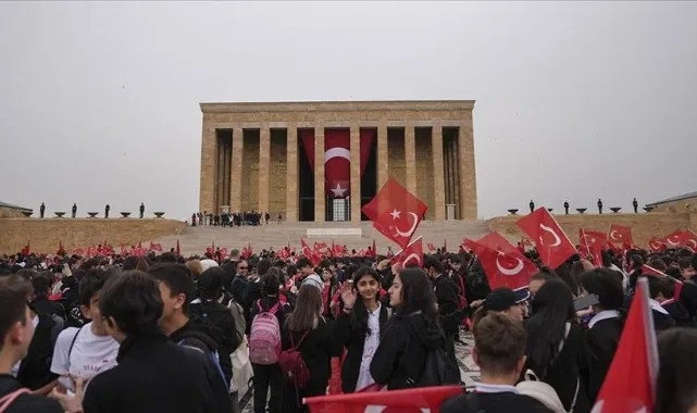 Aslanlı Yol'dan yürüyerek Gazi Mustafa Kemal Atatürk'ün mozolesine gelen heyet, TBMM Başkanı Kurtulmuş'un mozoleye çelenk bırakmasının ardından saygı duruşunda bulundu ve İstiklal Marşı'nı okudu.