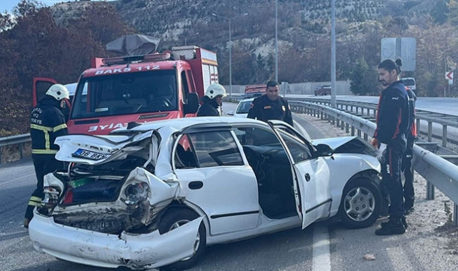 Kazada otomobil sürücüsü Mücahit Hasan A. ile yanındaki Emirhan S. yaralandı.